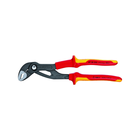 - The adjustment action to adapt to the workpiece is easy and reliable with the KNIPEX Cobra Insulated: place the upper gripping jaw of the opened pliers on the workpiece, push pliers to close, done!