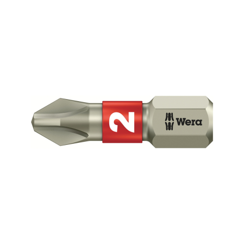 Torsion Stainless steel (TS) bits are high quality bits out of stainless steel for cross-recess screws. Wera stainless are made out of stainless steel which prevents the formation of unsightly extraneous rust. TS bits come with Torsion zone: Torsion bits absorb the damaging peak torque loads in the torsion zone. This prevents premature wear and enhances the service life of the bits.