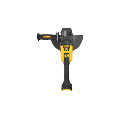 The DEWALT DCG460B 60V MAX* 7-9 in. Large Angle Grinder, DEWALT’s first cordless Large Angle Grinder, delivers immense power at more than 3,000 MWO with a brushless motor. Built with user protection top of mind, a Kickback Brake brings the wheel to a halt for full stoppage when a kickback is detected, while the E-CLUTCH System immediately shuts down the motor when a pinch or stall is sensed.
