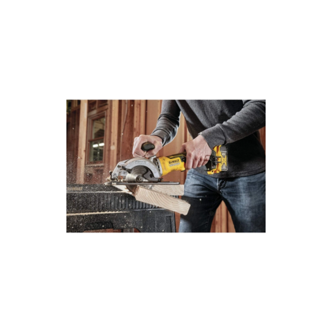 The DEWALT DCS571B Atomic 20 Volts Max cordless circular saw is powered by a brushless motor that allows to cut up to 369 linear-feet of 3/4 Inch OSB. Bevel gear design ensures that you can cut 2X more material at 90 degrees and 1x material at 45 degrees. The DEWALT DCS571B electronic blade brake stops blade quickly for safety. Convenient on-board blade key storage allows users to change blades with ease. Elongated handle optimizes reach for rip cutting OSB and plywood.