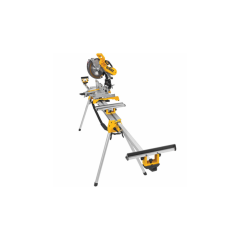 The DEWALT DWX723 heavy-duty miter saw stand is compatible to use with all miter saws. Lightweight design makes it easy to use and the aluminum construction offers added durability. Leg lock levers at the bottom allows quick setting up of the miter saw and the 5-1/2 Feet beam provides more support for up to 16 Feet material and up to 500 lb.