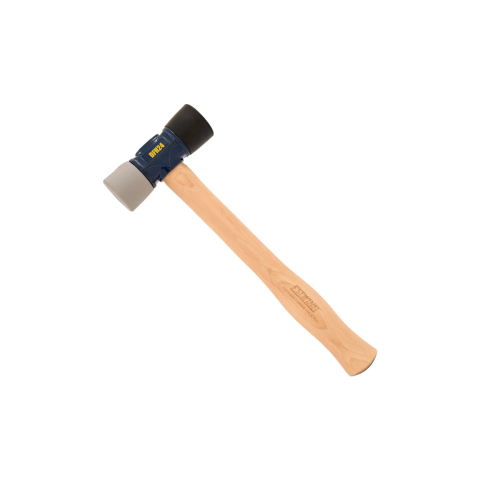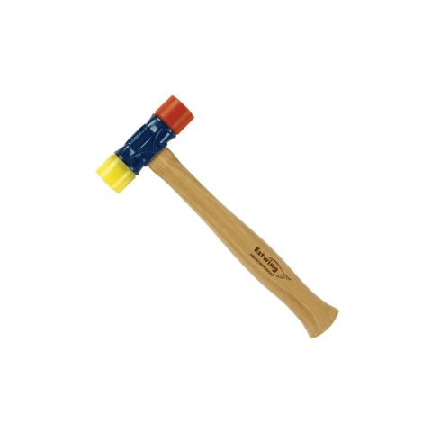 Estwing Rubber Mallet Hammer has a hickory handle, dual plastic faces and tips connected by forged steel. This double-faced hammer is used for assembling furniture, setting dowels and wood projects that require non-marring blows. The ESTWING Rubber Mallet hammer features two different types of heads, one soft and one hard, for working on various tasks.