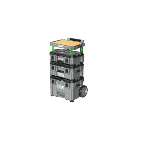 Turn your STACK PACK™ setup into a mobile work surface with the FLEX FS1401 FLEX STACK PACK™ Worktop. The worktop features a ¾-inch renewable plywood top that is durable and easily transportable, ready to take on the jobsite. Quick-connect latches offer fast and effortless interlocking connectivity with STACK PACK™ toolboxes and the Folding Rack Shelf (FS1502) for a customized work surface setup.