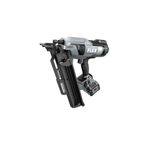 The FLEX FX4351A-1C cordless nail gun toggles between bump and sequential firing modes and has a nail indicator to easily see how many nails remain in the magazine. Dry-fire lockout avoids blank firing and damage to your work when the nail supply is exhausted. Its heavy-duty belt clip can be mounted on either side of the tool and features a lead-in profile. A convenient pivoting rafter hook allows additional easy storage when not in use. The framing nailer accepts 2-inch to 3-1/2-inch fasteners. This cordless nailer delivers the FLEX Advantage of unmatched battery power, runtime, and fast charging. The FLEX FX4351A-1C includes the 21° Framing Nailer, 5.0Ah lithium battery, 160W Fast Charger, rafter hook, belt clip, (3) no-mar tips, and a FLEX bag.