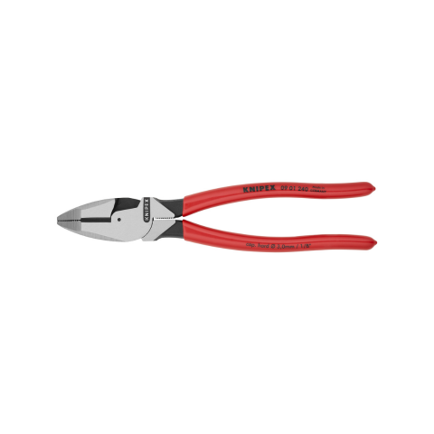 The High Leverage Lineman’s Pliers with New England Head is designed to make your work easier. Featuring a high transmission ratio for easy cutting, it requires 50 % less effort compared with conventional combination pliers for comfortable and efficient work. The solid construction with perfectly matched joint allows for the heaviest strain and makes it universally applicable. The ergonomically optimized handle shape ensures that you get a firm contact to the hand to reduce fatigue. The particularly effective cross-hatched knurled gripping zone in the jaws gives you a strong and secure grip and provides excellent pulling performance. There is an additional gripping zone below the joint for powerful leverage and pressing performance. The cutting edges are suitable for both soft and hard wire. Get this High Leverage Lineman’s Pliers with New England Head for easy, efficient, and comfortable work.