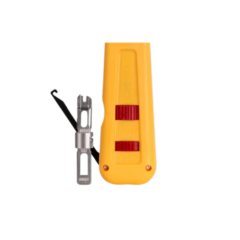 One of the standout features of this punchdown tool is its combination Hook/Spudger, conveniently stored in the chassis for quick access. The color-coded body, with half yellow for the cut side and half blue for easy identification, enhances usability and efficiency during wire termination. For added convenience, the JONARD EPD-914116 features an enlarged blade storage compartment, ensuring that your blades are always within reach when needed. Tested up to 100,000 cycles at high impact setting, this tool is built to last, providing you with long-term reliability and performance.