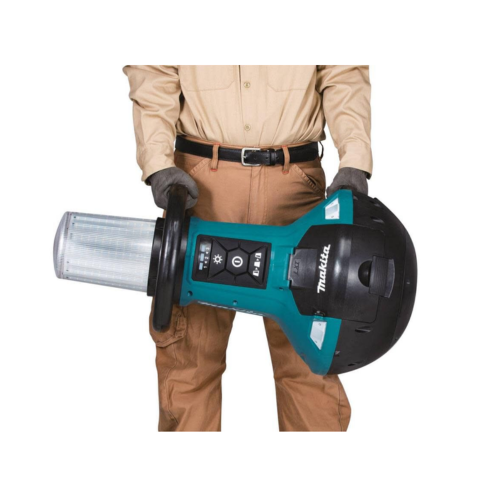 Durable construction offers good protection from dust and water in extreme jobsite conditions. The MAKITA DML810 flood light has a self-balancing design that keeps the light in an upright position even when it is knocked over. Two 5 Amp-hours batteries provide up to 15 hours of uninterrupted illumination. Carrying handle facilitates easy transportation, and the balanced side position makes it easy to carry.