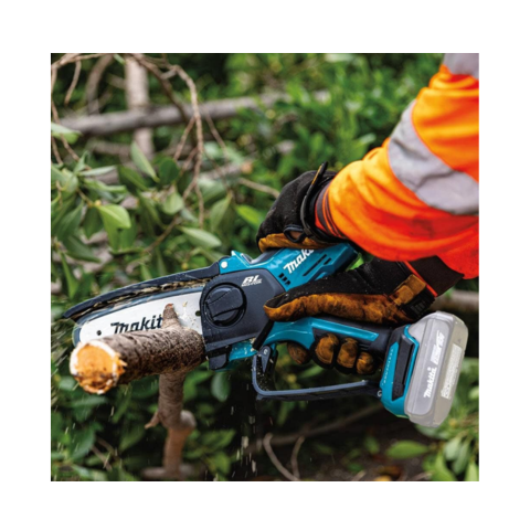 The MAKITA XCU14Z LXT® 18 Volts cordless 6 Inch pruning saw is built with brushless motor which offers optimum performance output. This tool ensures superior quality pruning, light limbing and cutting of up to 140 cuts in 2 Inch cedar. It is compactly designed, making it ideal for use in small spaces. Engineered with 6 Inch guide bar, 0.325 Inch LP pitch and 0.043 Inch gauge chain, this saw is perfect for use in high torque applications.