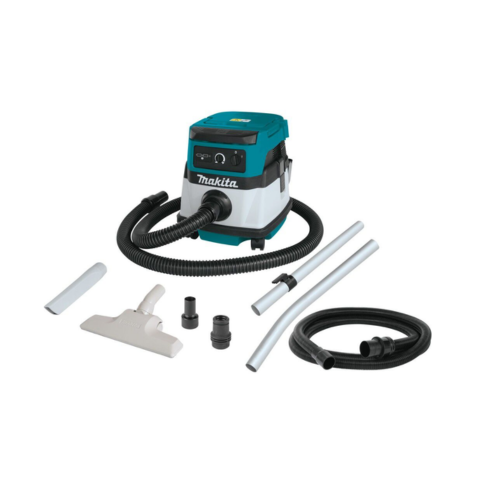 The MAKITA XCV04Zcordless/corded dry dust extractor/vacuum is powered by a Makita-built motor that delivers 127 cfm and 96 Inch water lift. Lithium-Ion batteries offer up to 65 minutes of continuous run time on low setting and 30 minutes on high setting. The efficient three stage HEPA filtration system has capacity to capture up to 99.97% of particulates and also maintains optimum suction efficiency and longer filter life.