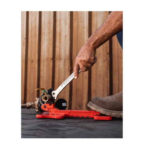 With a capacity ranging from 1/8″ to 2″ pipes and 1.5″ fittings, The Roughneck is a versatile companion for tradespeople. Its patent-pending spring-loaded Double V jaws make adjusting to different pipe sizes a breeze, while the non-skid rubber feet ensure a secure grip during operation without causing any damage.