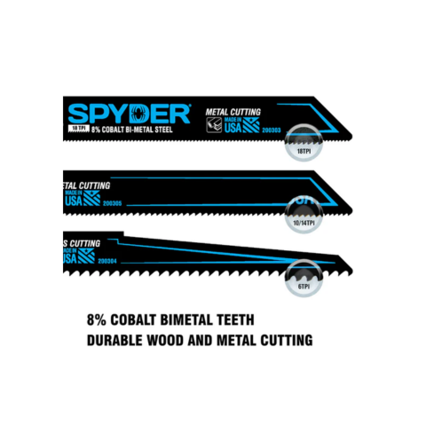 Introducing the SPYDER 200308 Black Series Bi Metal Reciprocating Blade 14PC With Case – the ultimate solution for all your tough cutting tasks. Crafted in the U.S.A., these Spyder Black Series blades are made with 8% cobalt bi-metal, ensuring durability and longevity that outperforms conventional blades.