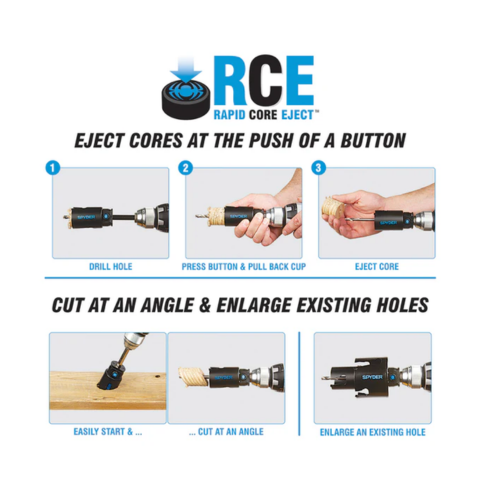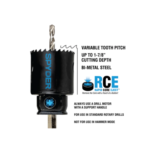 The SPYDER 600884 Spyder’s Door Lock Hole Saw Kit uses the Rapid Core Eject system to easily drill a straight, accurate hole, every time. The deep metal bushings accurately guide the pilot drill and won’t wear out like other plastic fixtures. The Clamp-On Quick Connect Design makes installation clean and easy. This kit uses Spyder’s bi-metal hole saws to make clean holes through various door materials, including hardwood, hollow core, and steel, up to 1-3/4-in and includes an accessory depth stop to prevent backside blowouts. With the SPYDER 600884 you can easily remove cores and change hole saw sizes without any additional tools.