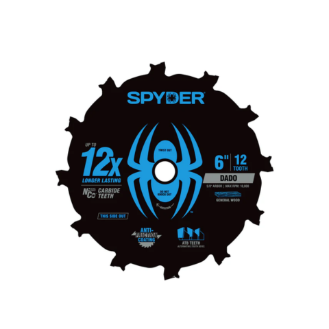 The Spyder Dado Blade Set is the ideal choice for ultra clean cuts in wood materials. Over-sized and resharpenable NiCo teeth are sharpened in an alternating tooth grind with a flat grind (ATG+F) to provide clean cuts in both soft and hard woods. Tracking straight with reduced friction, heat and noise, circular saw blades are the professional choice for cutting groves in all new wood materials from 1/4-in to 7/8-in in width. Up to 6x the life of standard carbide blades. Set includes: (2) 12-tooth cutting blades, (3) 2-tooth chipper blades, (3) spacers, (8) alignment shims.