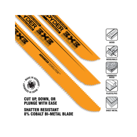 Built to last, the SPYDER Double Sided Saw Blade offers exceptional strength, versatility, and durability. The 8% bi-metal cobalt cutting edges ensure that the blade can power through various materials, including metals, wood with nails, and demolition tasks, without overheating or wearing out prematurely. With two cutting edges per blade, you can enjoy twice the cutting life with each 3X3 blade, making it a reliable and long-lasting addition to your toolkit.