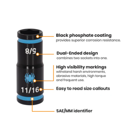 Crafted with a durable black phosphate coating, the SPYDER Flip Socket Set offers superior corrosion resistance, making it perfect for use in a variety of environments. Whether you’re working in a garage, workshop, or construction site, this socket set is designed to withstand the toughest conditions. Compatible with impact wrenches and drivers, the SPYDER Flip Socket Set provides the versatility and durability you need to tackle any project with ease.