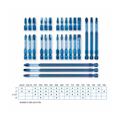 SPYDER Mach-Blue Drill and Impact Driver Bits are the durable driving bit for demanding high torque impacting applications. Mach-Blue™ Tough Tip Technology significantly reduces tip wear for reliable fastener driving – up to 70x longer life than other impact rated driver bits.