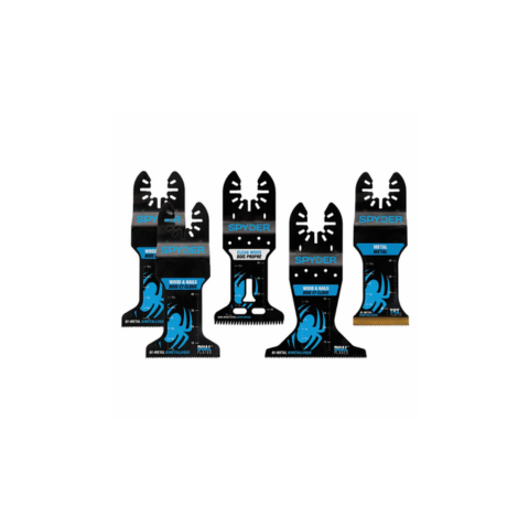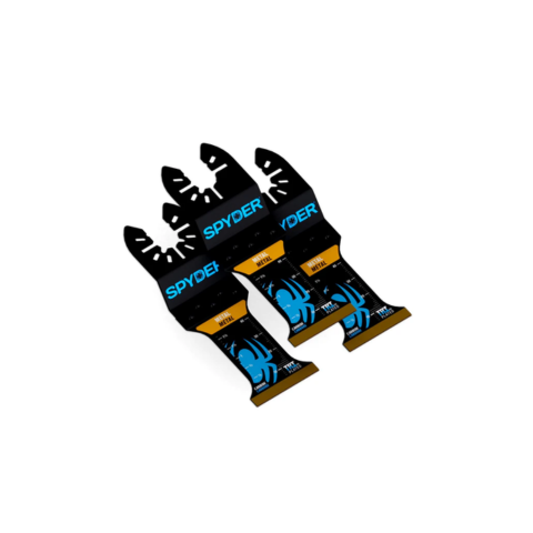 SPYDER Oscillating Tool Blades make up to to 60x more cuts than standard bi-metal blades and 10x more cuts than standard carbide blades for increased life in demanding plunge and lateral cuts in wood, nails, screws, PVC, drywall and more. A universal fit arbor ensures compatibility with all open-back oscillating tools. A full 2″ depth of cut on each blade ensures maximum reach and superior cutting tooth velocity.