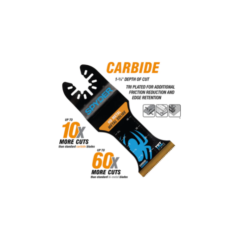 The SPYDER Oscillating Tool Blade featureS an ultra-durable carbide cutting edge that withstands extreme cutting heat and delivers long-lasting performance, are tri-plated for additional friction reduction and edge retention. These blades are not compatible with Starlock tools.