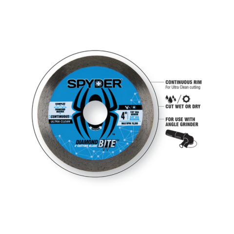 Introducing the SPYDER Wet/Dry Continuous Diamond Saw Blade, your ultimate cutting companion for a wide range of materials. Whether you’re working with porcelain tile, ceramic tile, masonry, block, or brick, this blade is designed to deliver exceptional performance. Crafted with a high concentration of premium industrial diamonds, this blade boasts a complex diamond matrix bond that ensures cooler, quicker, and cleaner cuts compared to standard diamond blades.