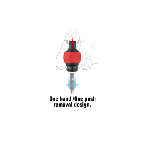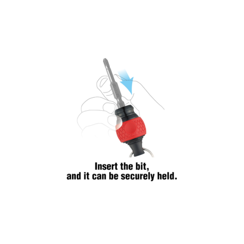 The Mini Screwdriver Key Chain Bit Holder Bits can be replaced with just one hand. It has a smooth surface finish and pull-up type sleeve prevent tools from dropping. Its strong ball chuck enables to mount a tool up to 500g. Flat ring with large diameter is also good to attach carabiners and other items. The Mini Screwdriver Key Chain Bit Holder has a light-weight design by using aluminum parts. Anodized color coding. Lightweight design using reinforced plastic and a cushion grip for a soft hand touch.