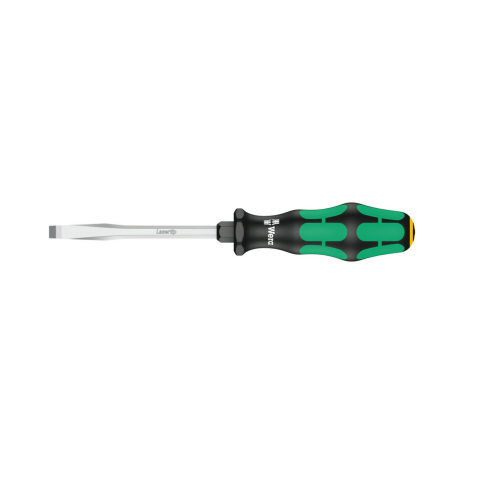 The WERA 334 SK Screwdriver for Slotted Screws feature high quality Kraftform Plus screwdriver with hexagonal blade. Hard gripping zones for high working speeds whereas soft zones ensure high torque transfer for fast and low-fatigue working. “Take it easy” tool finder with colour coding according to profiles and size stamp – for simple and rapid accessing of the required tool. The WERA 334 SK Screwdriver for Slotted Screws hexagonal non-roll feature prevents any rolling away at the workplace.