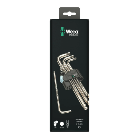 Revolutionize your toolbox with the WERA 3950/9 Stainless Hex-Plus L-Key Set with Ball End. Say goodbye to the extraneous rust problem by fastening stainless screws with stainless tools. The innovative Hex-Plus design ensures that socket head screws have a longer lifespan. These stainless L-keys are not just tools, they are rust-prevention heroes for your stainless screws. With size markings, these L-keys are always quickly within reach. Keep them organized in the robust belt pouch, ensuring easy access at all times.