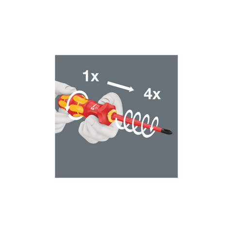 Transform your screwdriving experience with the WERA 827 T Kraftform Turbo. This innovative tool offers 4 times the screwdriving speed, thanks to its turbo function, which is purely mechanical, eliminating the need for batteries. Activating and deactivating the turbo function is a breeze with a simple push of a button, allowing for smooth couplings.