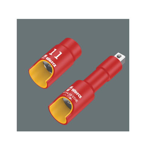 Enhance your tool kit with the WERA 8794 LB VDE Zyklop Extension. This long version extension offers increased safety with its 2-component isolation featuring a yellow insulation core under the red outer layer. In case of any damage to the VDE insulation layer, the yellow core becomes visible, ensuring a prompt replacement. The plastic coating not only provides protection to the extension itself but also safeguards the surfaces you are working on from any potential damage.