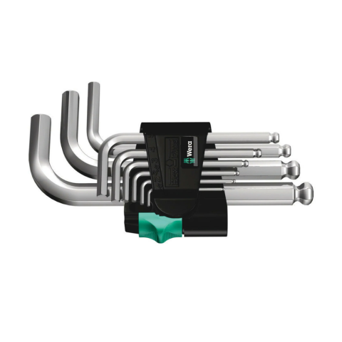High quality WERA 950/9 Hex Plus L-Key Set w/Ball End This ensures that the tool is quickly to hand and the ergonomic and pleasant handle is easy on the hands even at low temperatures. The wear-resistant clip material ensures secure storage of the L-keys as well as simple removal. The Hex-Plus profile offers a greater contact surface in the head of the screw.