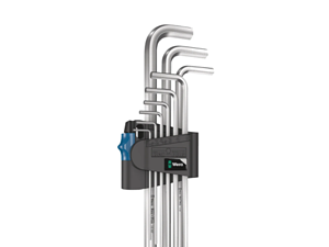 The WERA 950/9 Hex Plus L-Key Set are some high-quality L-keys for hexagon socket screws with high corrosion protection and extra long lever for high power transmission and working in low positions. The Hex-Plus profile offers larger contact surfaces at the screw head. The WERA 950/9 Hex Plus L-Key Set notch effect is thereby reduced to a minimum, the destruction of the screw head almost eliminated. Tools from size 3 onwards offer a holding function through a pressed resilient ball.