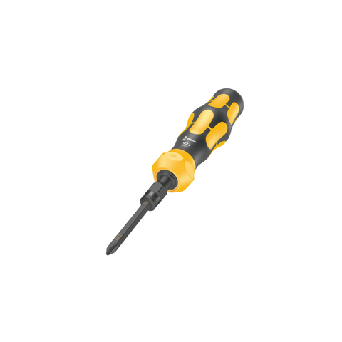 With this set, the hammer blow impulse is efficiently converted into a rotary movement, providing a loosening torque of approximately 25 Nm without any loss via a pound-thru blade. The reversible functions of the WERA Kraftform Kompakt 900 Set 1 Imperial allow you to switch between an impact wrench and a screwdriver, providing versatility for various tasks.