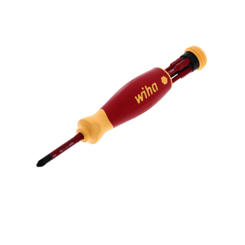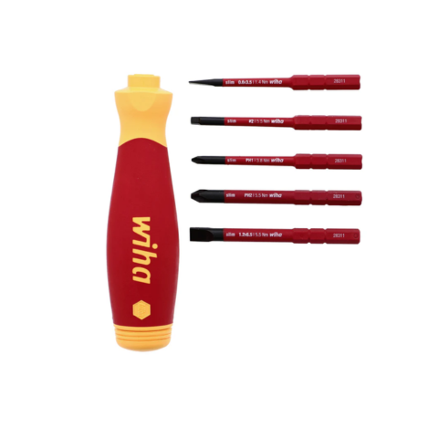 The WIHA 28345 6 Piece Insulated SlimLine PocketMax Multi-Driver is equipped with insulated SlimLine Bits for electricians. Every single Wiha insulated tool is individually tested to 10,000 volts AC and rated to 1,000 volts AC (1,500 volts DC) for safety and peace of mind in energized applications. This tool is VDE Certified and meets EN/IEC 60900 testing standards for protection against arc flash explosion, ASTM F1505 standard specifications for insulated and insulating hand tools and CSA testing benchmarks for safety and performance.