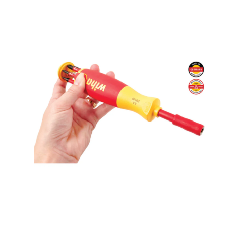 This WIHA 7PC Ultra Driver w/SlimLine Profile 1000V Insulated tool is VDE Certified and meets EN/IEC 60900 testing standards for protection against arc flash explosion, ASTM F1505 standard specifications for insulated and insulating hand tools, for electrical safety on the jobsite, and CSA testing benchmarks for safety and performance.